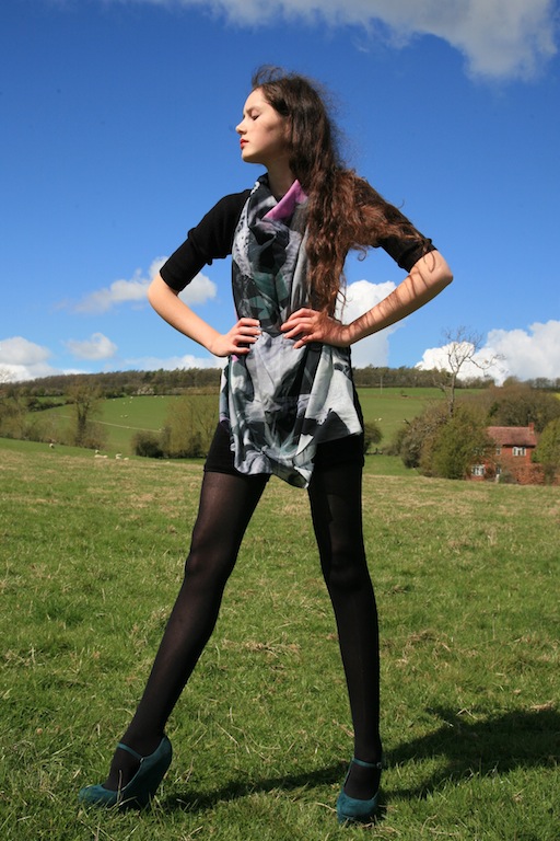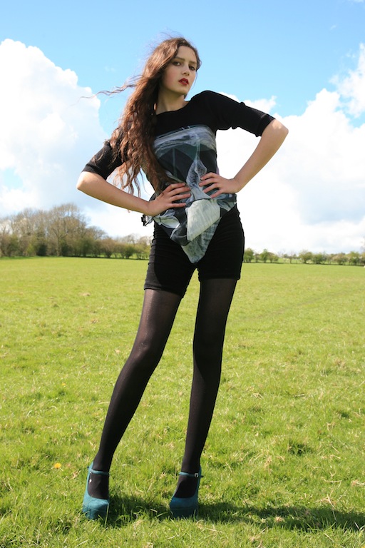 for sending it to me, and for alerting me to the website. I wanted to style it in a variety of different ways, and so the rest of the outfit was very simple. The black velvet shorts were cut down and customised from trousers, the top is from a charity shop and the towering wedges (so precarious that every other shot was of me staggering around and falling over) are from eBay.