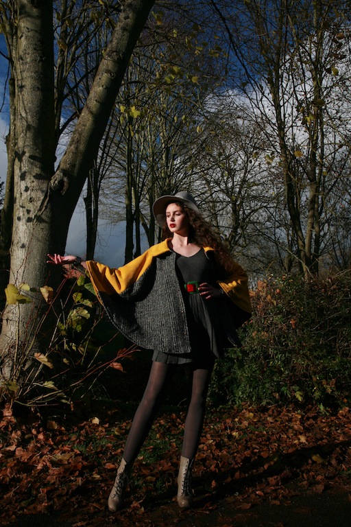 Big, big thank you to Erika for the delicious hunter cape. She is the owner and designer of Asuyeta (a Cherokee word meaning 'chosen') and she also makes all the clothes on the website herself, meaning that each is a one-off - an individual echo of the original design. She describes her pieces as "clothes with a soul. No mass-production. No sweat shops... Just unique, beautiful designs." They certainly are. If I wasn't already the lucky owner of this one, I'd definitely want it on my Christmas list. It is styled here with an array of second hand clothes and accessories.